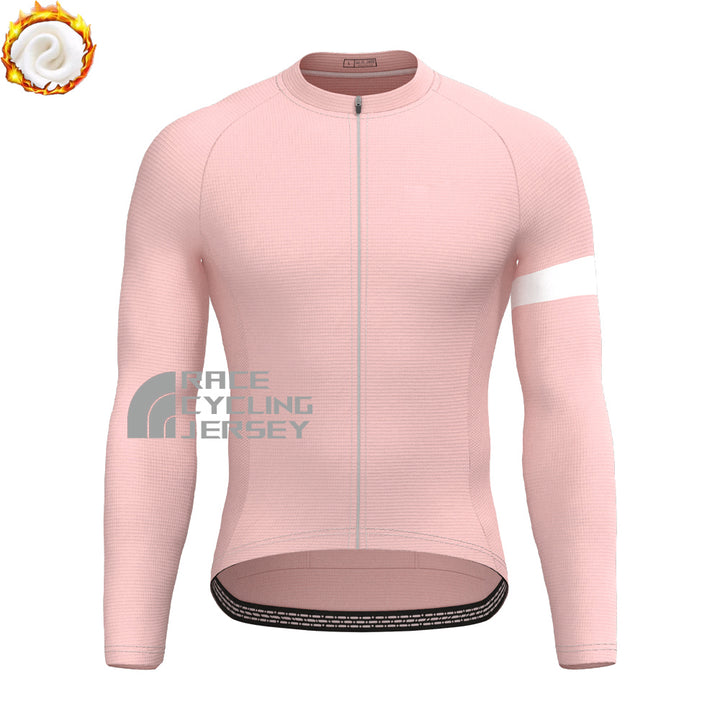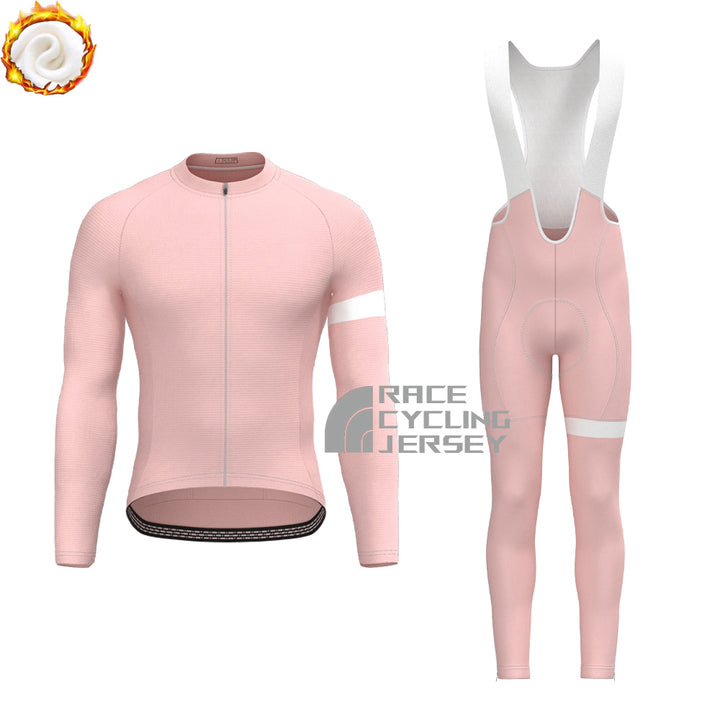 Macaron Pink Fleece Long Sleeves Cycling Kits
